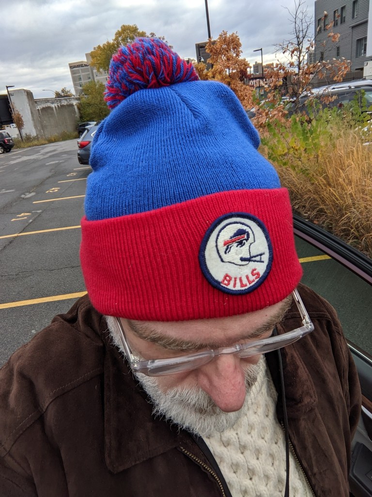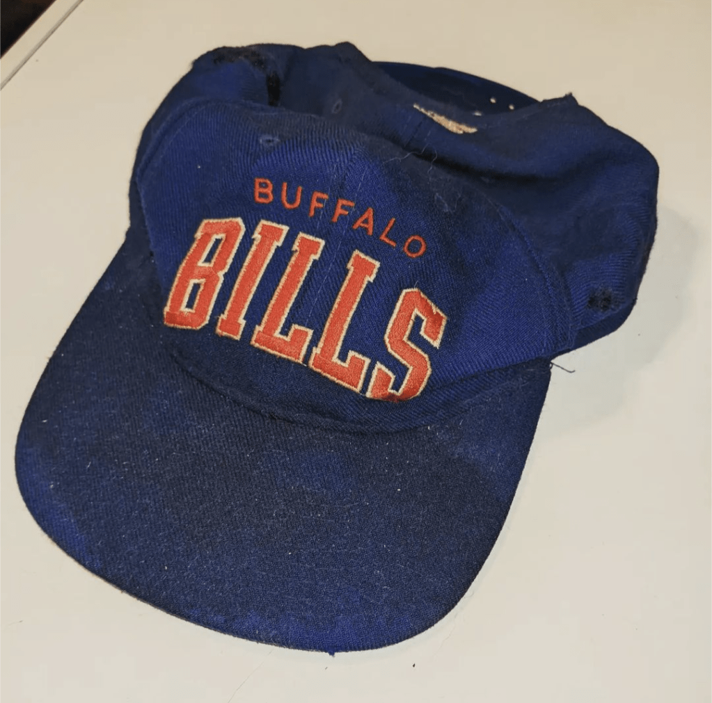 I bought this flat cap during a 2018 trip to England. It was made in Yorkshire and purchased at the Stonehenge gift shop. This was one of the first non-baseball caps I started wearing with regularity and it served as something of a headwear gateway drug.A heavy Harris Tweed flat cap I wear quite a bit in the winter. (Despite how it might look with the sunglasses, I was not cosplaying as some obscure jazz musician.)I bought the patch on eBay and applied it to this generic red and blue toque in an attempt to recreate the look of those Sears catalog NFL hats that were everywhere in the 70s and 80s. Wearing this has earned me a few nods of appreciation (and double-takes) from other Gen-X guys who had the Sears version of their team’s hat back in the day.Speaking of Bills hats, here’s a Starter cap I’ve had since the early 90s. I don’t wear it now due to the fact that it looks like it’s been through a war, but this was a daily wear for me when I was in my 20s.I keep it around now as proof of my fan bona fides amid all these newly minted Bills fans who can’t name any players who pre-date Josh Allen.For a while, I resisted the siren call of fedoras because I didn’t think I could pull one off. Whether I can or can’t is in the eye of the beholder, but I broke down and got this Akubra Stylemaster a few months ago and wore the heck out of it until the weather got too warm for fur felt. A Stetson Stratoliner in hemp straw. This is a perfect warm-weather option to keep the sun off my head during my nature walks.And, oh yeah — here’s one I found packed away with a bunch of my parents’ old belongings.