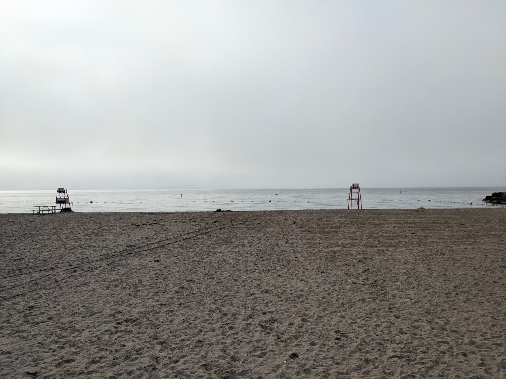 It was past 7 p.m. when we got there, so I wasn’t surprised that there were no lifeguards on duty, but it was still a little odd that the beach was largely empty on a Saturday. (The sign at the park entrance stating that the water temperature stood at 58 degrees might have contributed to that.)