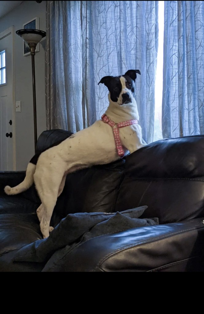 Millie came to us as last year a shelter dog on the eve of termination. Based on her age and circumstances, she was believed to be a “COVID puppy”– one of the many dogs adopted at the height of the pandemic when everyone was home, who were later abandoned when things returned more to normal. Perhaps it’s because of that abandonment, or the many months spent in a shelter, that Millie is relentlessly affectionate with her humans. She always wants to play, to tug, to fetch, to be on a lap, licking a face, or curled up at someone’s feet. In those pursuits, she doesn’t like to take “no” for an answer.