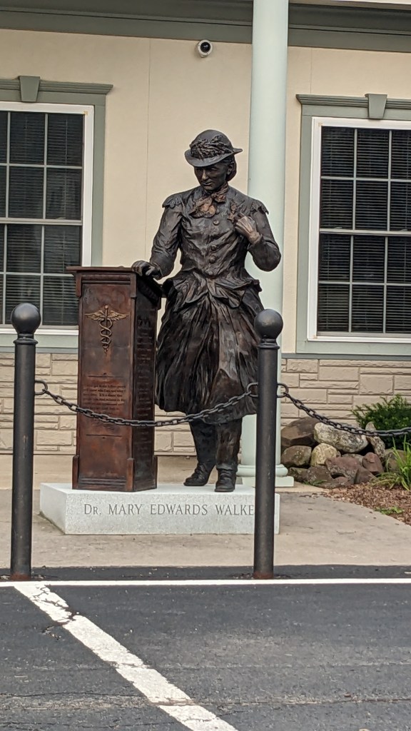 The plaque just barely scratches the surface. Not only was Dr. Walker the first woman ever awarded the Congressional Medal of Honor, but she remains the only female recipient. She was an abolitionist, a prisoner of war, a suffragette, and a philanthropist. Dr. Walker was also controversial for publicly wearing men’s clothes at a time when that was considered scandalous; so scandalous that she was arrested a few times for doing so. There are accounts of her in her later years, strolling around Oswego in a man’s suit and top hat, sporting her Medal of Honor, much to the chagrin of the pearl-clutchers of the era.