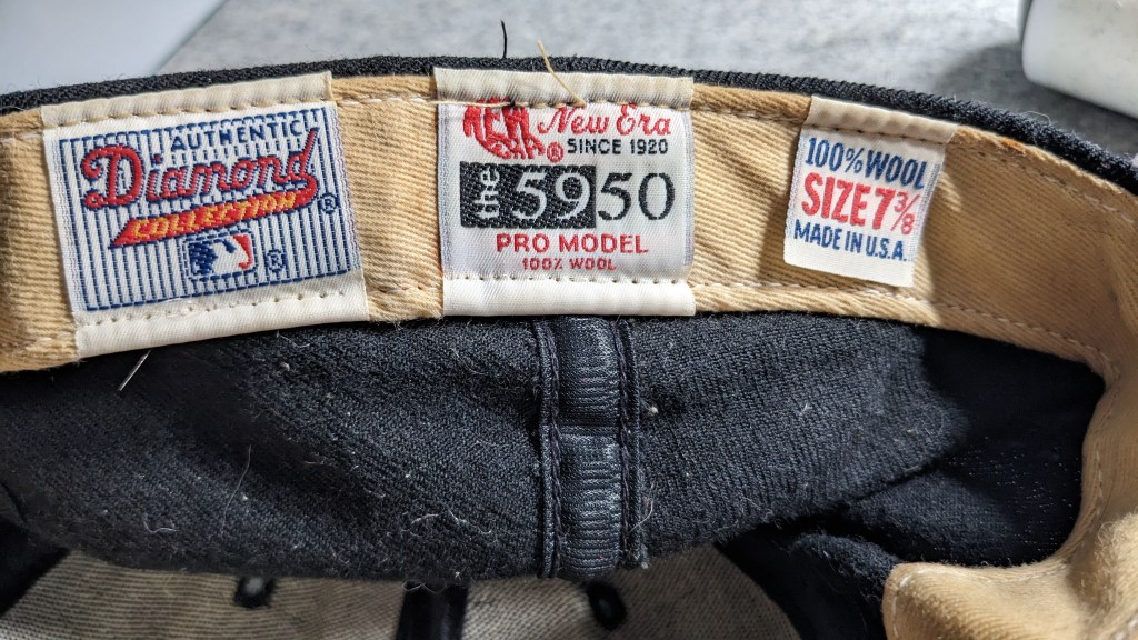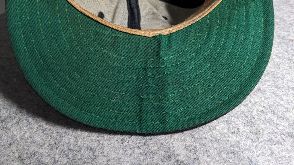 The hat is a little weather-beaten, which isn’t surprising given that it’s probably 30 years old and has spent about half that time stuffed in a box in a damp basement. The visor is cracked and there are a lot of loose threads sticking out of it, but all things considered, it cleaned up pretty well. It will have a place in my hat rotation for the duration of baseball season.