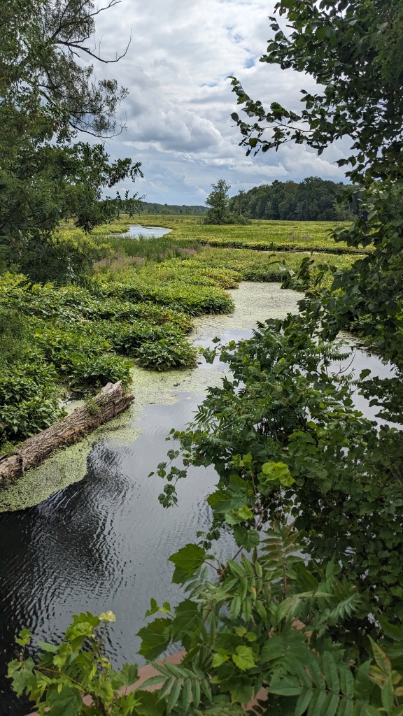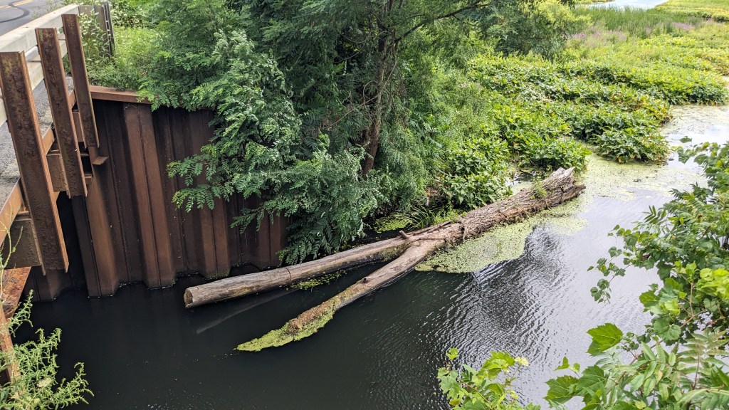 Ox Creek is a tributary of the Oswego River, located primarily in the Town of Granby, a little south of Fulton. I drive over the creek every day on my way to and from work. There’s nothing I know of that’s particularly noteworthy about Ox Creek; I just find it pretty. There are summer days when I drive over the bridge and am tempted to pull over and explore around the wetland’s lush greenery. Today, while passing through Granby on County Route 14, I did just that.