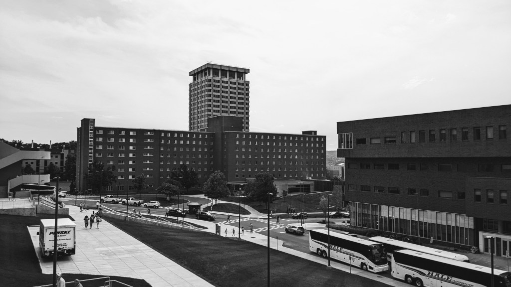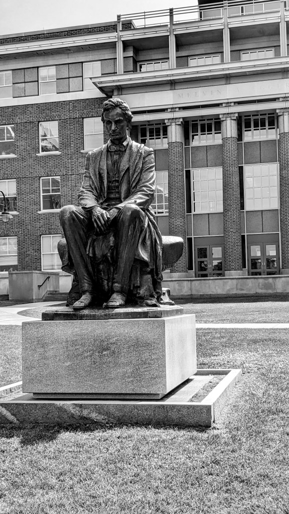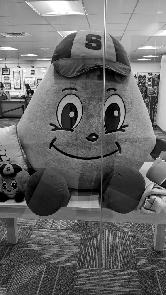 Hall of Languages. This is the university’s signature building. Some say it was the inspiration for the Addams Family house. That may or may not be true, but Hall of Languages can definitely look like a spooky haunted mansion on a gloomy Syracuse day.A monument to the Syracuse University students lost on Pan Am Flight 103, which was destroyed in-flight over Scotland by a terrorist bomb in 1988. Thirty-five of the victims were Syracuse students heading home after a semester abroad. I knew two of them.College Place.The ivy-covered walls of academia.Crouse College — possibly the most majestic building on campus.Honest Abe sitting outside the Maxwell School of Citizenship and Public Affairs. Lincoln had no special connection to the City of Syracuse or Central New York that I am aware of, and he was assassinated five years before Syracuse was founded as a university, but it’s a striking statue, in any case.Carnegie Library.Sadler Hall (the wide one) and Lawrinson Hall (the tall one) viewed from the Dome. The College of Law is located in the building on the right.There are a number of different versions of Otto the Orange, which vary widely in terms of cutesiness, plushiness, roundness, and ferocity. This incarnation is not my favorite. The S.I. Newhouse School of Public Communications. I earned a Master’s degree from Newhouse in 1995 and taught Advertising Research here in 2019.“Knowledge crowns those who seek her.“