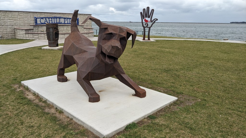 My visit to Cahill Pier happened on one of those overcast, gray days that dominate Central New York’s calendar in the non-summer months, and seem to grow progressively a little more overcast, a little grayer (and a lot windier) as one gets closer to Lake Ontario. I wouldn’t have had it any other way.