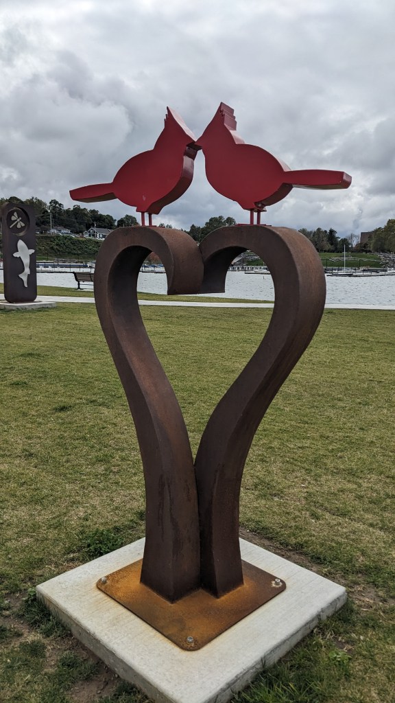 I had seen the pier area from a distance when it was under construction, and read about the opening, but I hadn’t actually visited it until today. It is different than my conception of a “pier,” per se. It’s more of a linear park with some boating facilities. Whatever one wants to call it, it’s a very nice space, complete with public art, some handsome masonry features, and welcome new vantage points of familiar sights around Oswego’s Maritime District.
