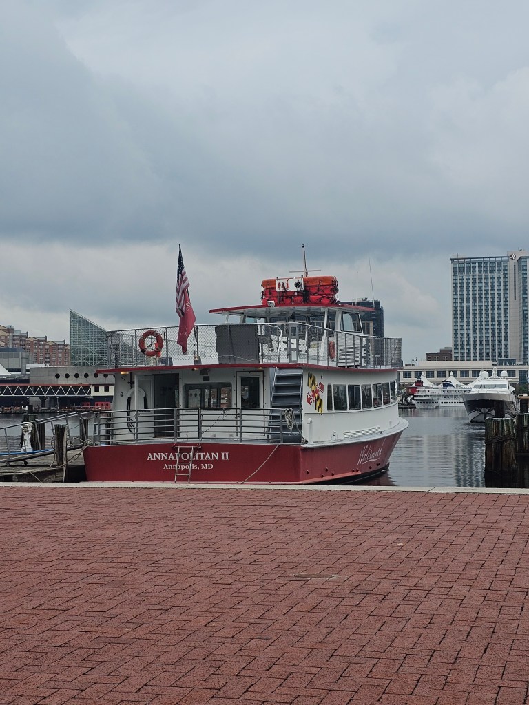 The sightseeing by boat tradition continued a couple weeks ago when we found ourselves in Baltimore and had some time to kill before the Orioles game we were in town for. We hopped on a tour boat and cruised around the Inner Harbor for a little under an hour. It was a gray and drizzly day, but we still managed to enjoy the views off the starboard side.