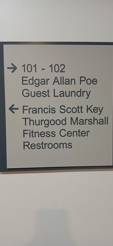I’ve long admired the state pride displayed by Marylanders. They miss no opportunity to brandish images of blue crabs, Old Bay, the Calvert coat-of-arms flag, and references to their esteemed  native sons and daughters….or, in the case of the guy they named this laundry room after, famous people who happened to die here.