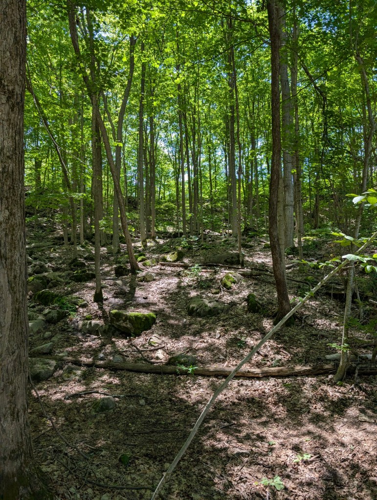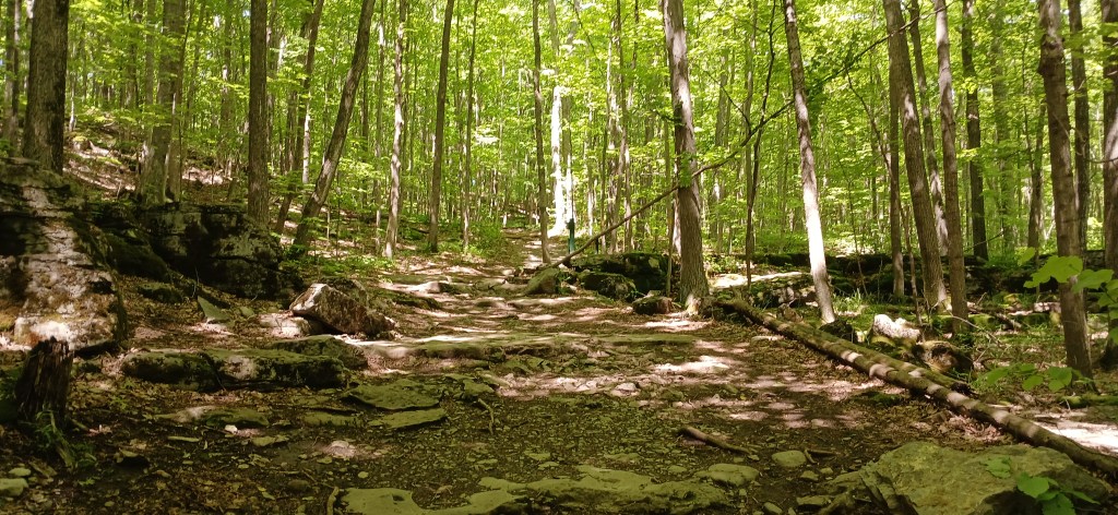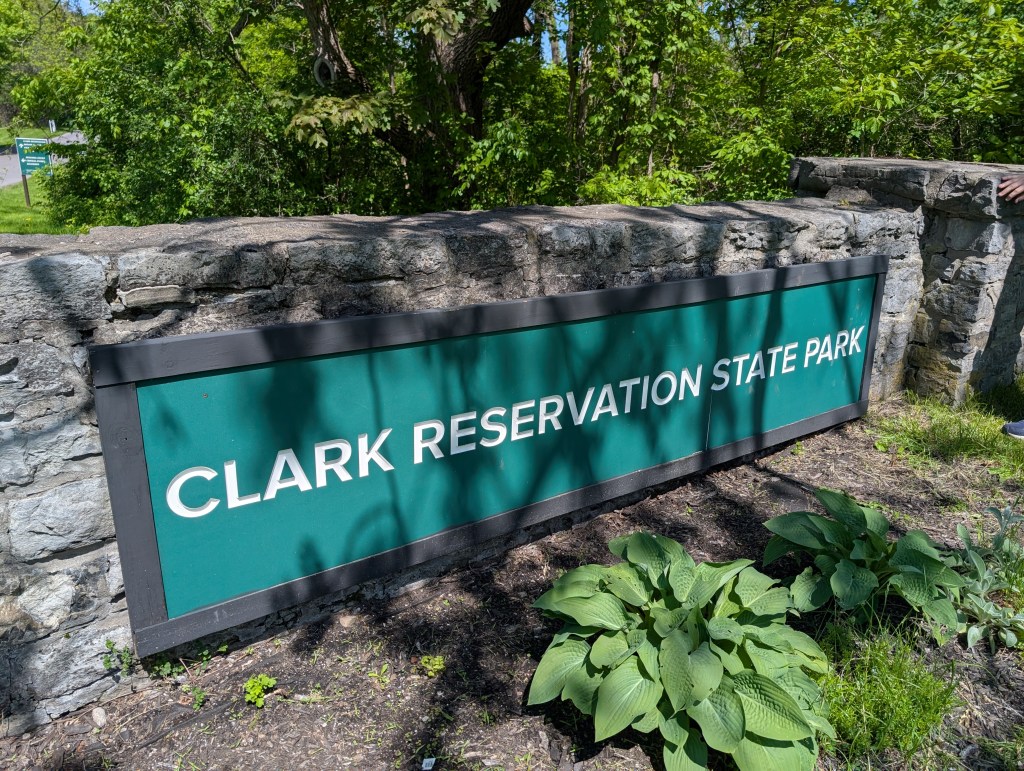 Today’s destination was Clark Reservation State Park located in Jamesville, a suburb of Syracuse. The park’s webpage describes the place as “a geologic wonder of the last ice age and a botanist’s paradise.” I’m neither a geologist nor a botanist, but I was very taken with the terrain. The park is filled with formations created by glacial ice. It’s a rugged tableau softened by shady woodland.
