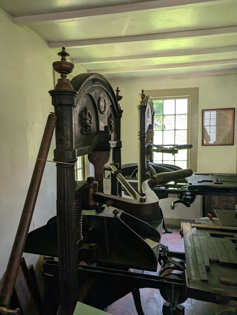 It was fun to see the mechanical and tactile processes involved in spreading the printed word back in those days. Here are some photos from our visit: